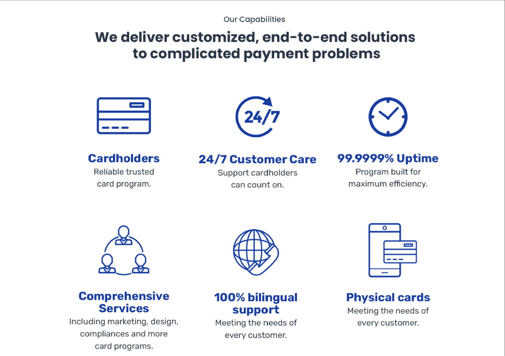 prides itself on being a full-service payment company. Our programs are completely customized from the ground up including everything from card design and materials, to portals and bespoke mobile apps.